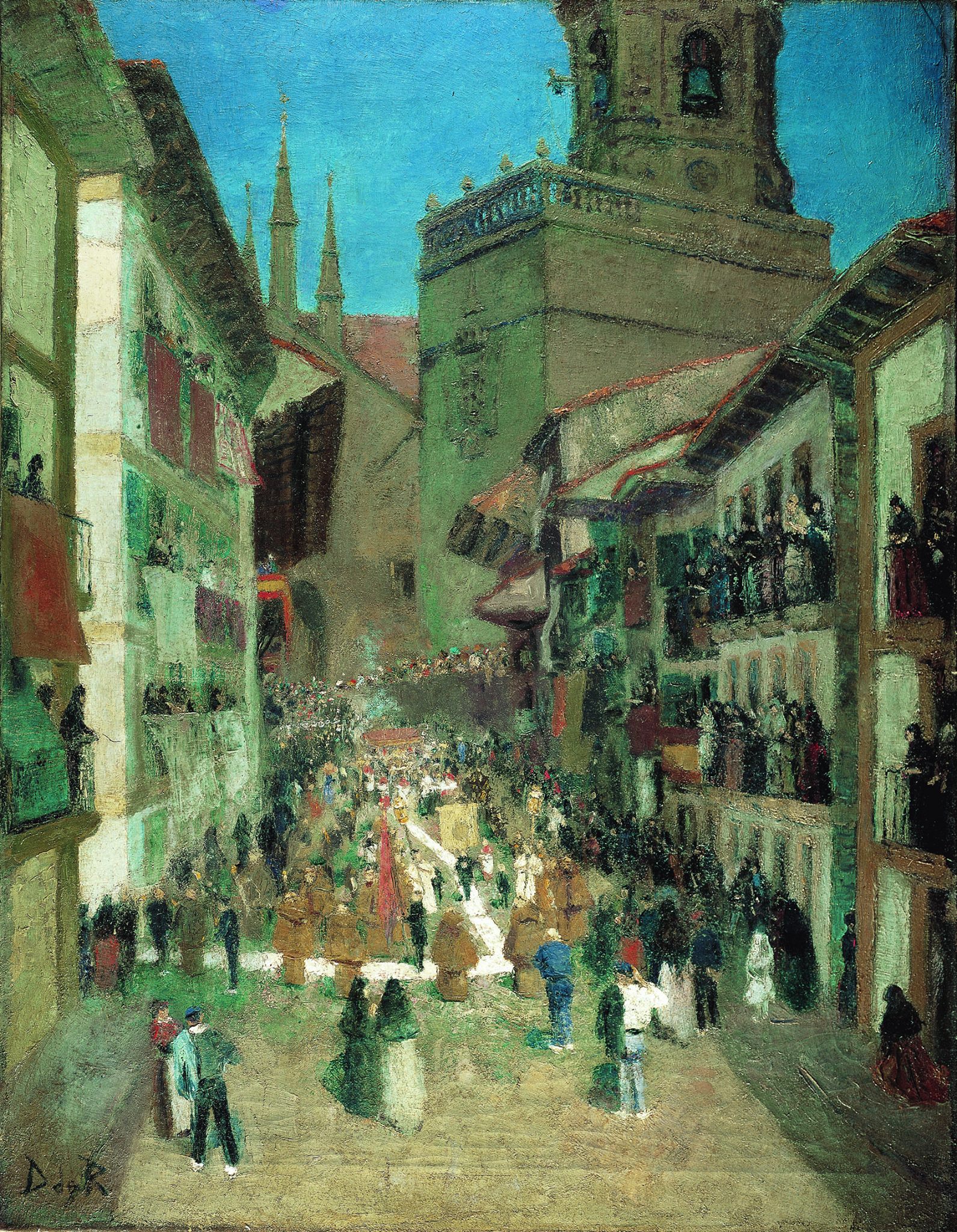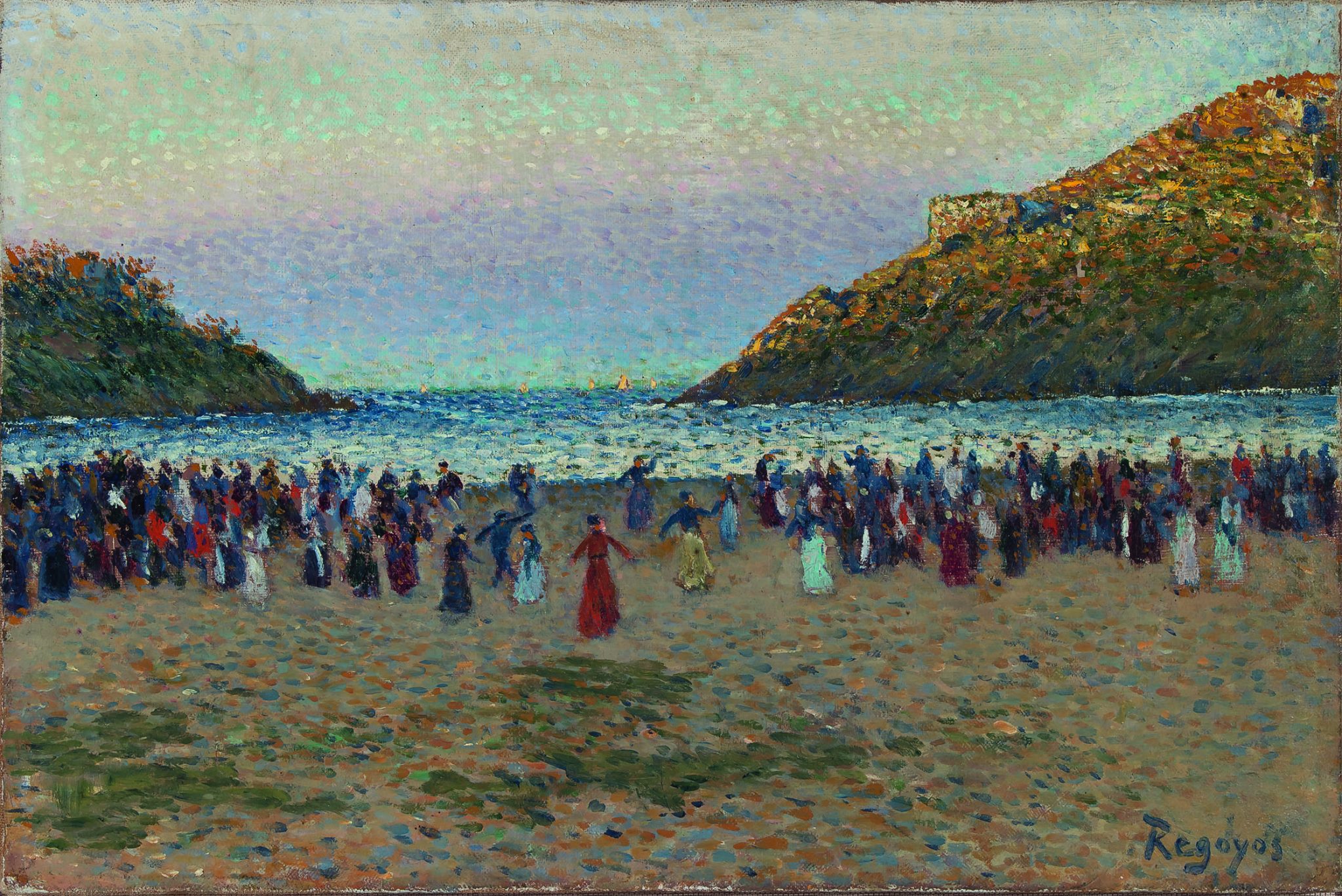 En el museo Thyssen-Bornemisza: Darío de Regoyos (Ribadesella, Asturias, 1857-Barcelona, 1913), es el principal representante español del impresionismo. Fue un verdadero descubrimiento, no lo conocíamos absolutamente, ni siquiera su nombre. Además estudió en Bruselas, donde se trasladó en 1879. Conoció a pintores belgas, como James Ensor y Théo van Rysselberghe; y franceses como Camille Pissaro, George Pierre Seurat y Paul Signac que indudablemente lo influenciaron. Su estilo en continua evolución recorrió un poco todo el periodo impresionista, sus obras son en mayoría paisajes muy coloridos y con la luz esplendente del Mediterráneo.