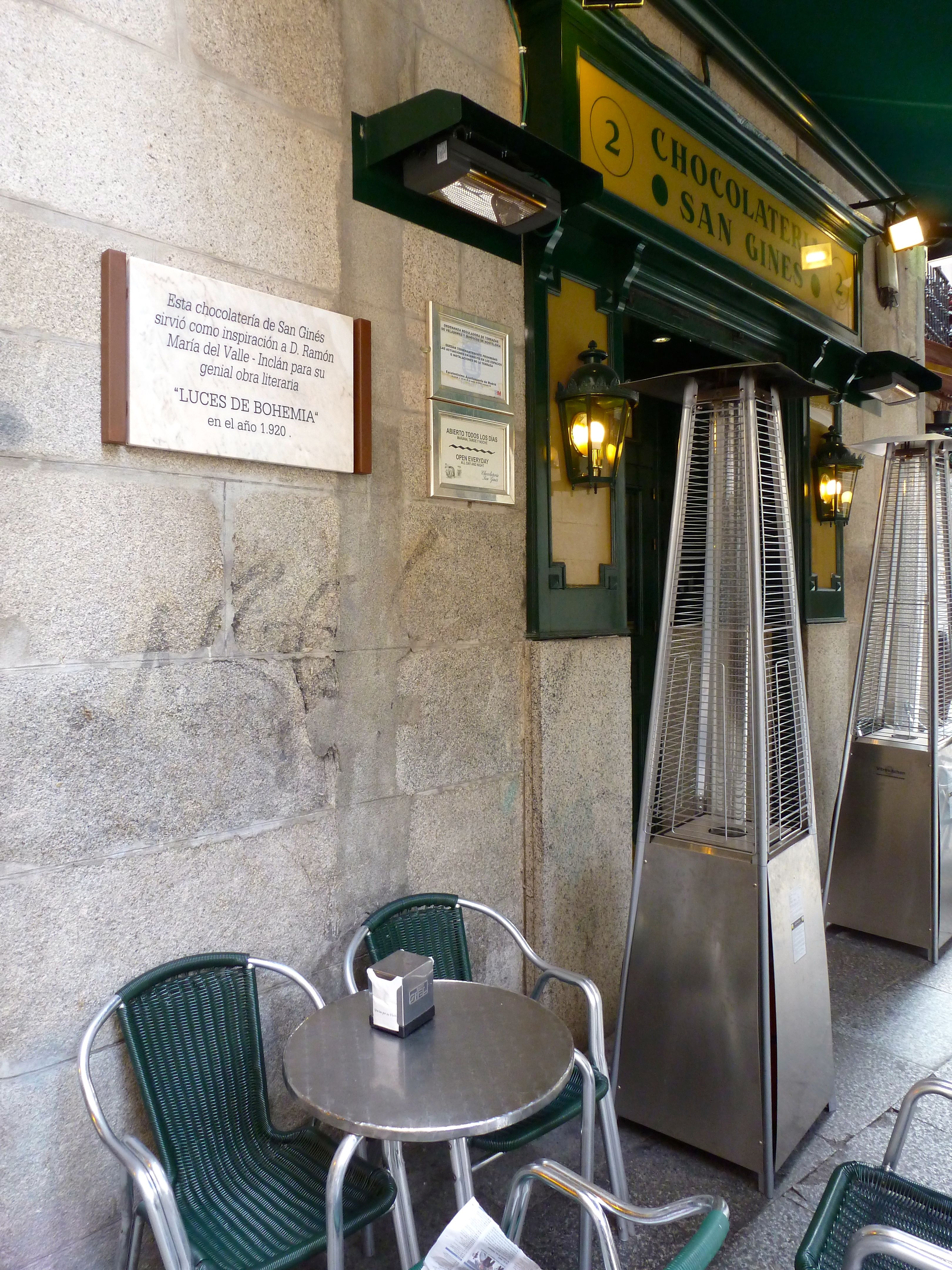 Chocolatería San Gines abierta todos los días del año 24 horas para servirte el desayuno (chocolate con churros) al alba después de una noche en la movida madrileña.