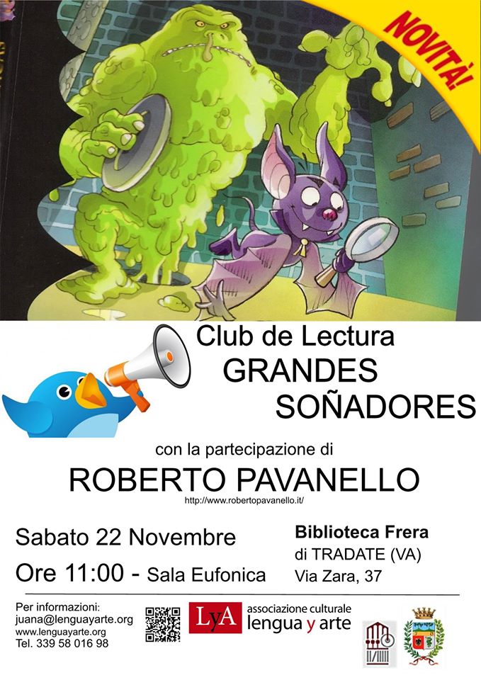 Estos encuentros gratuitos de lectura en castellano, para chicos y chicas de 6 a 12 años, se desarrollan en la Biblioteca Frera de Tradate. Los organiza la dinámica Asociación Lengua y Arte y en ellos está presente el autor de los libros Roberto Pavanello.
