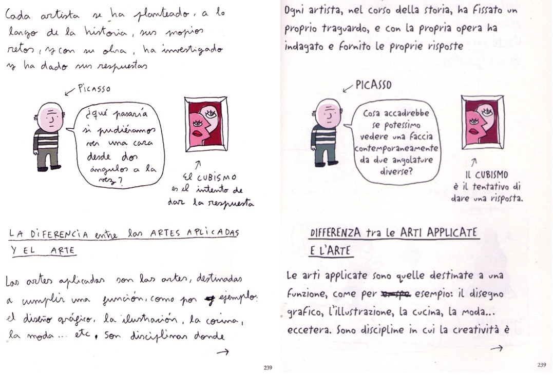 Lo dibujó y escribió Juanjo Sáez, un dibujante profesional, viñetista y autor de trabajos publicitarios. En esta obra (un híbrido muy original entre novela gráfica y ensayo) propone su reflexiones sobre el arte através de una conversación imaginada con su madre. El estilo eligido por el autor es el del borrador o del diario personal, como si escribiera a vuelapluma. Por eso tacha palabras, corrige errores o deja comas sobrantes. Quien lo desee puede encontrar mucho material sobre su obra en la Red.