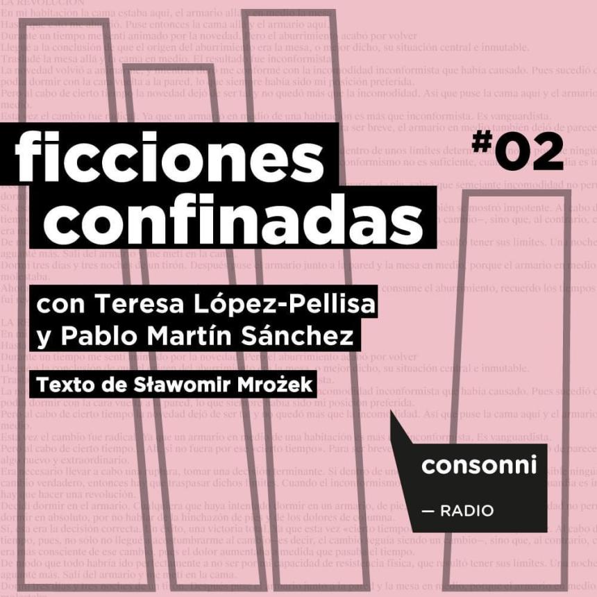 La profesora de literatura y autora de varios libros sobre ciberfeminismo y ciencia ficción Teresa López-Pellisa y el escritor y traductor Pablo Martín Sanchez, nos presentan «Ficciones confinadas». En estos momentos de confinamiento domiciliario, nos leen microficciones cuyas historias transcurren dentro del hogar, dentro de una casa o dentro de un espacio en la que el personaje no puede salir. La microficción incluida en este segundo episodio es «La revolución» de Sławomir Mrożek. Además contamos con la música hecha desde casa por Nagore M. Jauregui y Alvaro Segovia y la parte técnica a cargo de Alberto de la Hoz.